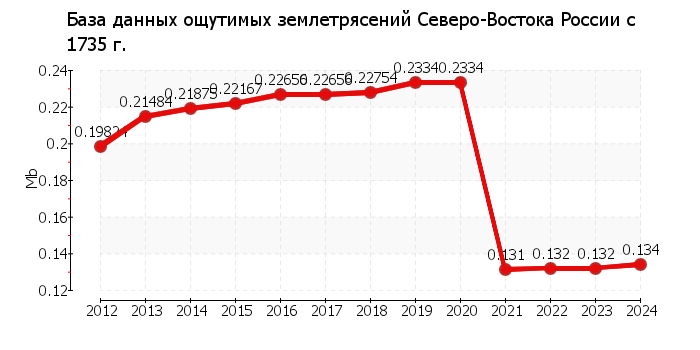 НазваниеБаза данных ощутимых землетрясений Северо-Востока России с 1735 г.ПодразделениеМагаданский филиал ФИЦ ЕГС РАН (МФ ФИЦ ЕГС РАН)