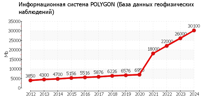 ОписаниеРезультаты геофизических наблюдений хранятся в виде Информационной системы POLYGON (ИС), реализованной на основе СУБД MySQL. База данных геофизических наблюдений и другой вспомогательной информации (далее БД) содержит данные наблюдений, получаемые в подразделениях КФ ФИЦ ЕГС РАН, а также данные других организаций, которые предоставляются КФ ФИЦ ЕГС РАН по договорам о научно-техническом сотрудничестве. Пополнение БД производится с использованием программных средств информационной системы POLYGON. В настоящее время БД расположена на сервере КФ ФИЦ ЕГС РАН с доступом пользователей к БД по локальной сети. Доступ пользователей КФ ФИЦ ЕГС РАН и сторонних организаций, в частности Института вулканологии и сейсмологии ДВО РАН, обеспечивается администратором базы данных геофизических наблюдений КФ ФИЦ ЕГС РАН.Географические границы