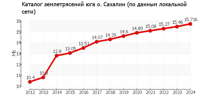 ОписаниеКаталог содержит основные параметры и разнообразные энергетические характеристики землетрясений, зарегистрированных локальной сетью СФ ФИЦ ЕГС РАН в южной части о. СахалинГеографические границы