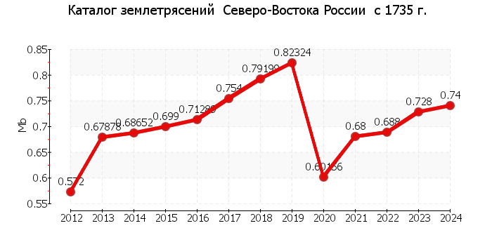 НазваниеКаталог землетрясений Северо-Востока России с 1735 г.ПодразделениеМагаданский филиал ФИЦ ЕГС РАН (МФ ФИЦ ЕГС РАН)