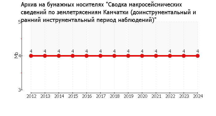 НазваниеАрхив на бумажных носителях "Сводка макросейсмических сведений по землетрясениям Камчатки (доинструментальный и ранний инструментальный период наблюдений)"ПодразделениеКамчатский филиал ФИЦ ЕГС РАН (КФ ФИЦ ЕГС РАН)